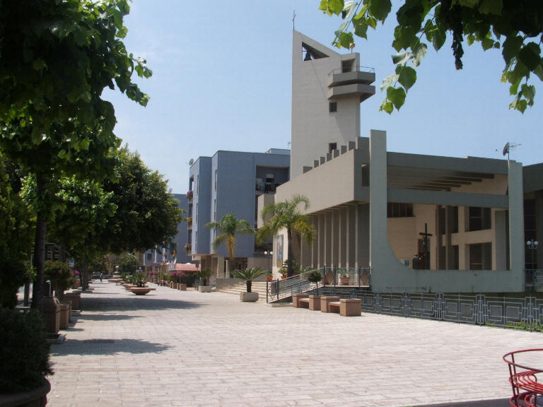 Piazza Gepy Faranda e la Chiesa della Madonna di Czestochova. L'altare della Chiesa contiene un quadro della stessa Madonna nera di Czestochova omaggiato ed autografato, al Comune di Capri Leone, da Papa Giovanni Paolo II°